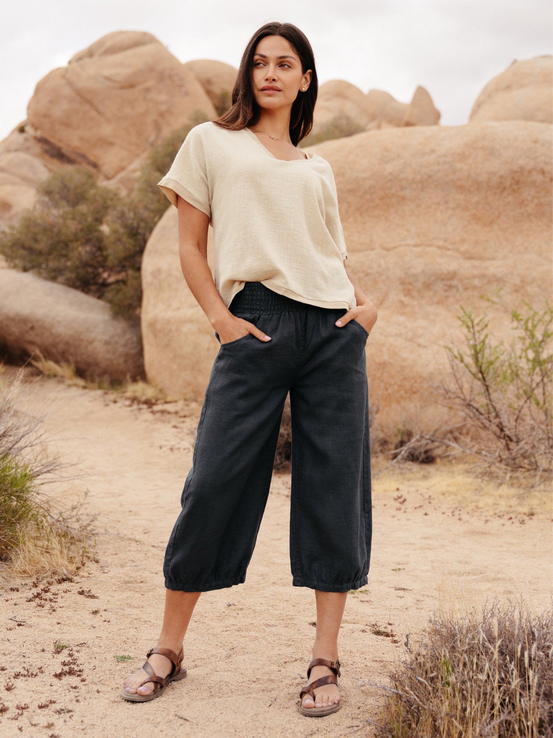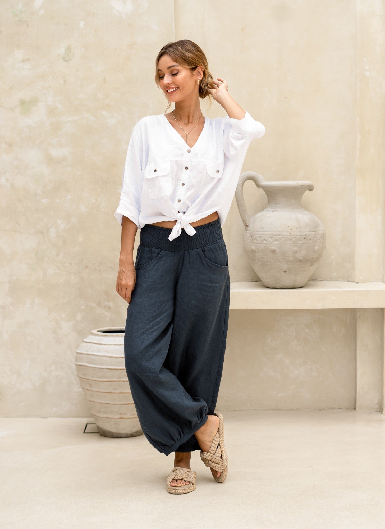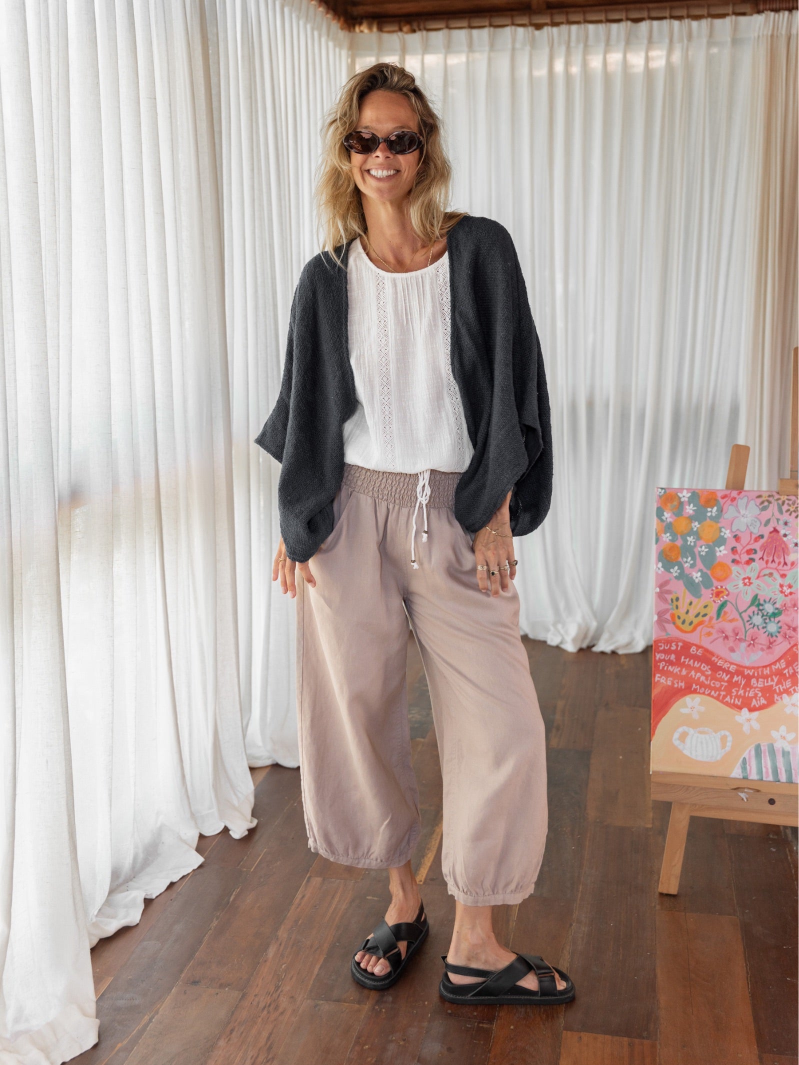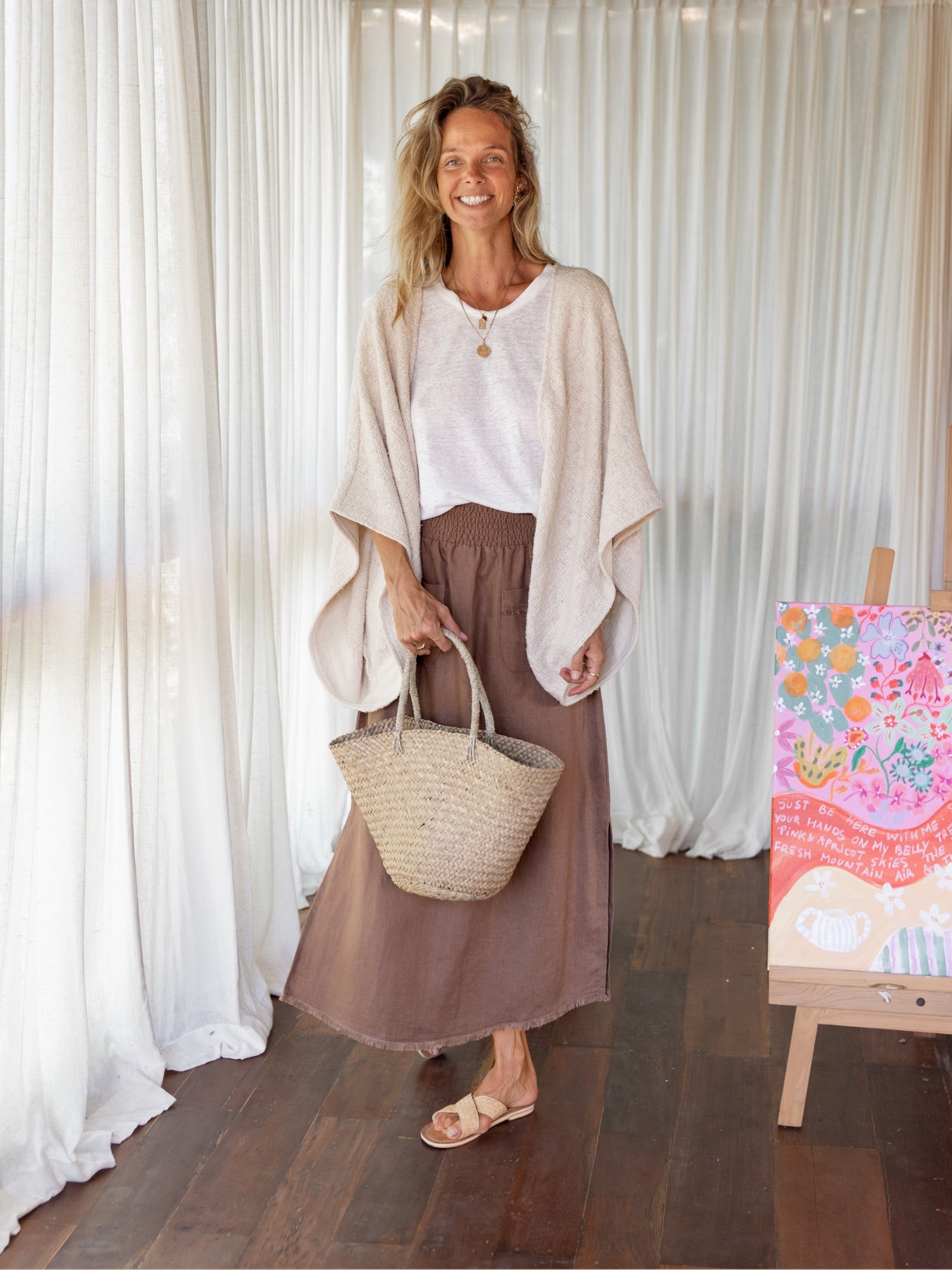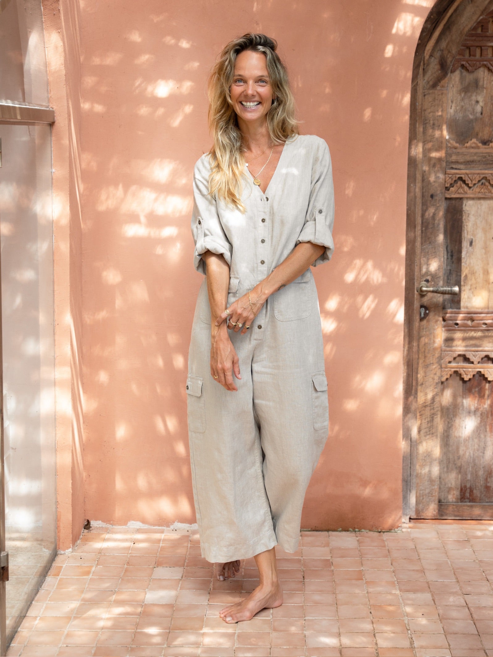 Nathalie is a Balinese artist, a mother, and a maker who has built a life shaped by creativity, nature, and the sea. She wears our French linen from the studio to the shore, dressed for the life she has actually built. Shop the pieces she wears every day.