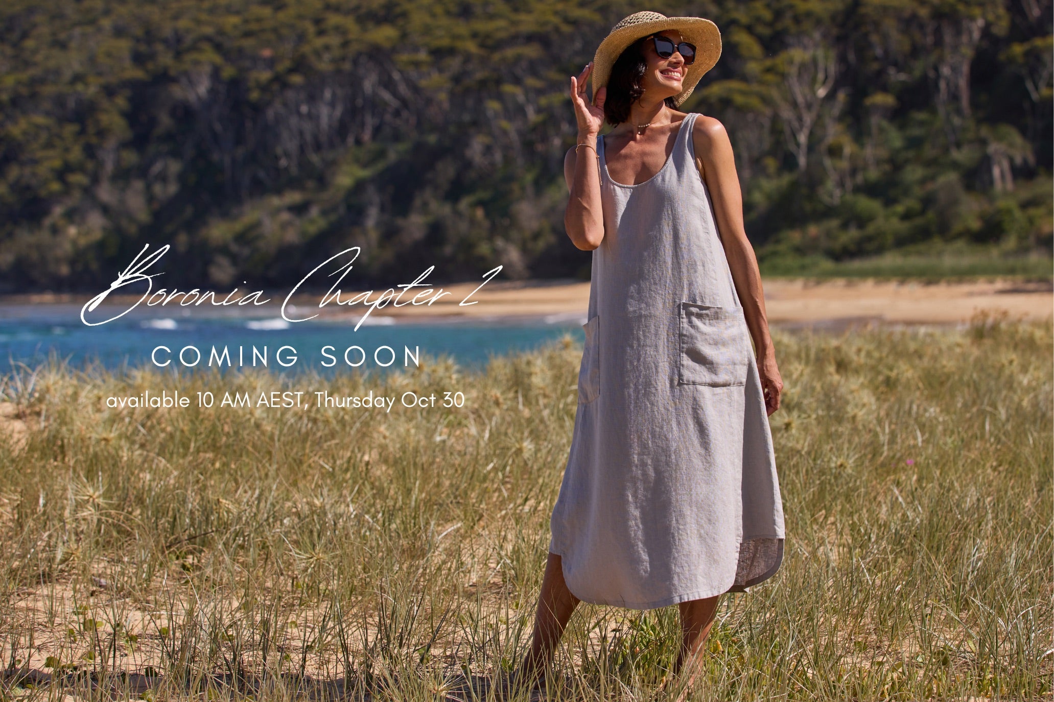 Boronia Chapter 2 introduces our first pieces in Australian Merino wool — fine, soft, and naturally breathable, alongside Good Earth Cotton® and OEKO-TEX® certified French linen. Together, they form a collection grounded in comfort, sustainability, and the quiet luxury of natural fibres.
