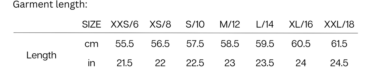 XXS/6 | XS/8 | S/10 | M/12 | L/14 | XL/16 | XXL/18 | |